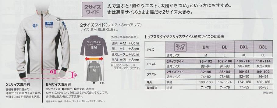サイズ : BM(88〜94)・BL(94〜98)・BXL(98〜102)・B3L(102〜106) (対応胸囲(cm))