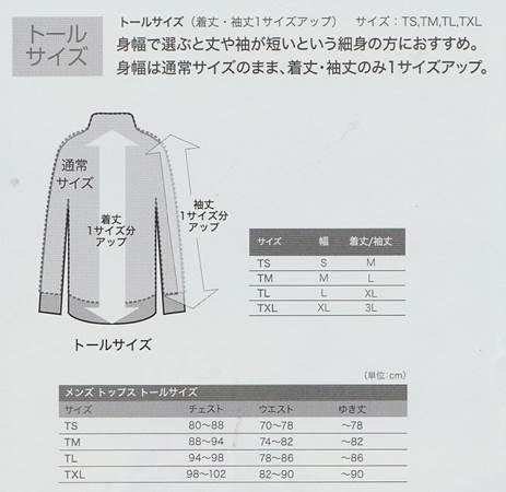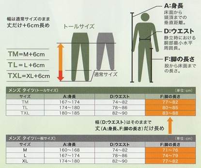 サイズ : TS(98〜102)・TM(88〜94)・TL(94〜98)・TXL(98〜102) (対応胸囲(cm))