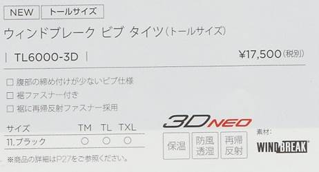 TL6000-3D ウィンドブレーク・ビブタイツ